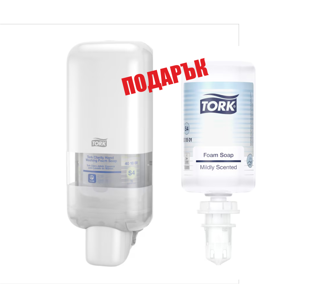 Tork Сапун на пяна Premium 6 х 1 литър на цена от 60.00 евро без ДДС + ПОДАРЪК Tork Дозатор за сапуни и дезинфектанти Elevation New - system S4 + ПОДАРЪК 1 литър Tork Сапун на пяна Premium