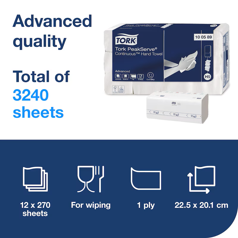 Tork Кърпи за ръце PeakServe H5, Advanced, бели, 1 пл., 12 х 270 бр. - system H5